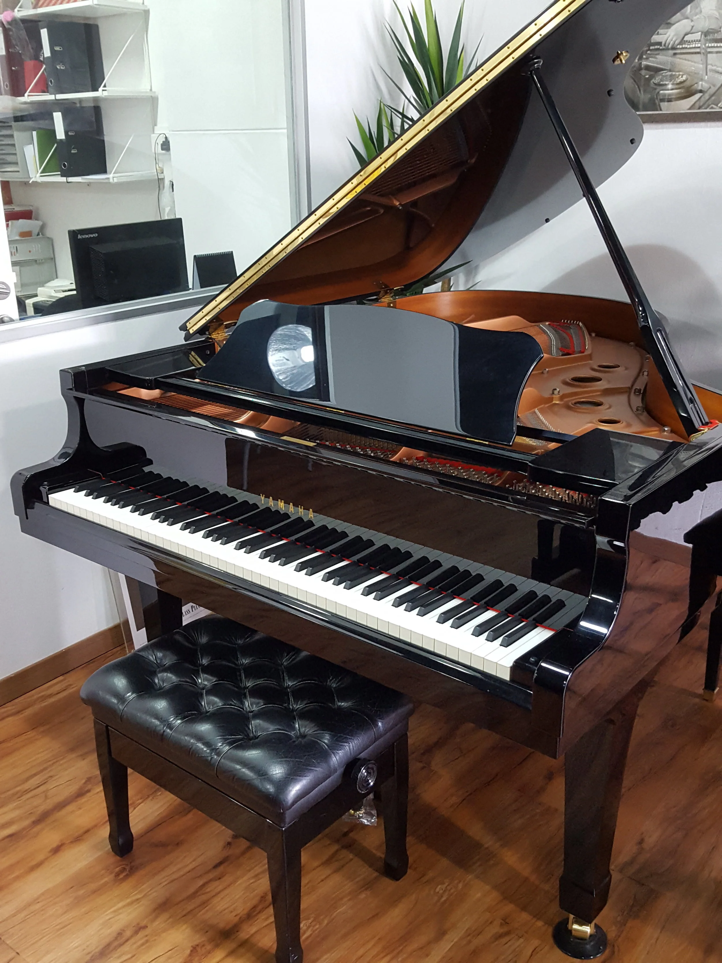 Made in Hamamatsu, Japan, and with all-original parts, this grand piano (149.9 cm or 59" in width and 185.4 cm or 6' 1" in length) bears the classic brightness and clarity of Yamaha's sound, with an expressive warmth and vivid resonance on a firm touch.